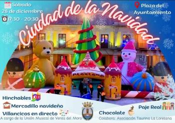 sábado 28 de diciembre de 17 h. 30 m. a las 20 h. 30 m. Mercadillo navideño en la Plaza del Ayuntamiento de Venta del Moro. Además, hinchables infantiles, villancicos por la Unión Musical, chocolate, y ¡mucha más diversión!