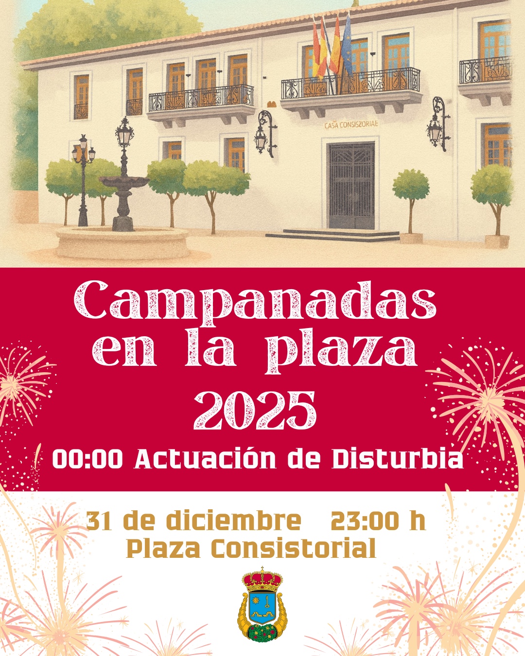 - Y para continuar la celebración, habrá una actuación en directo de Disturbia, que animará el Año Nuevo con música y buen ambiente.