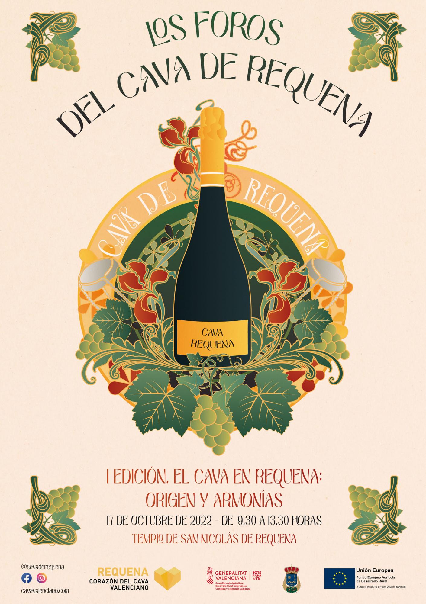 La jornada “El Cava en Requena: Origen y Armonía” se celebrará el próximo lunes 17 de octubre entre las 09:00 y las 13:30 horas en el Templo de San Nicolas de Requena. El acceso al recinto es libre (hasta completar aforo) y se puede confirmar plaza enviando un correo electrónico a hola@cavavalenciano.com. La iniciativa está organizada por la Asociación de Elaboradores de Cava de Requena en colaboración con el Ayuntamiento de Requena y la Conselleria de Agricultura, Desarrollo Rural, Emergencia Clmática y Transición Ecológica. Cuenta además con el patrocinio de los Fondos Europeos para Desarrollo Rural de la Unión Europea.