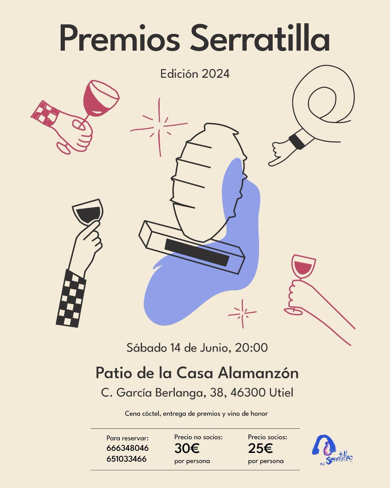 La Asociación Cultural Serratilla celebrará el próximo sábado 14 de junio a las 20:00 horas, en el Patio de la Casa Alamanzón, el acto de entrega de los Premios Serratilla 2024. Un reconocimiento al compromiso con la recuperación del patrimonio, la divulgación cultural y el arraigo al territorio en el municipio de Utiel y su territorio.