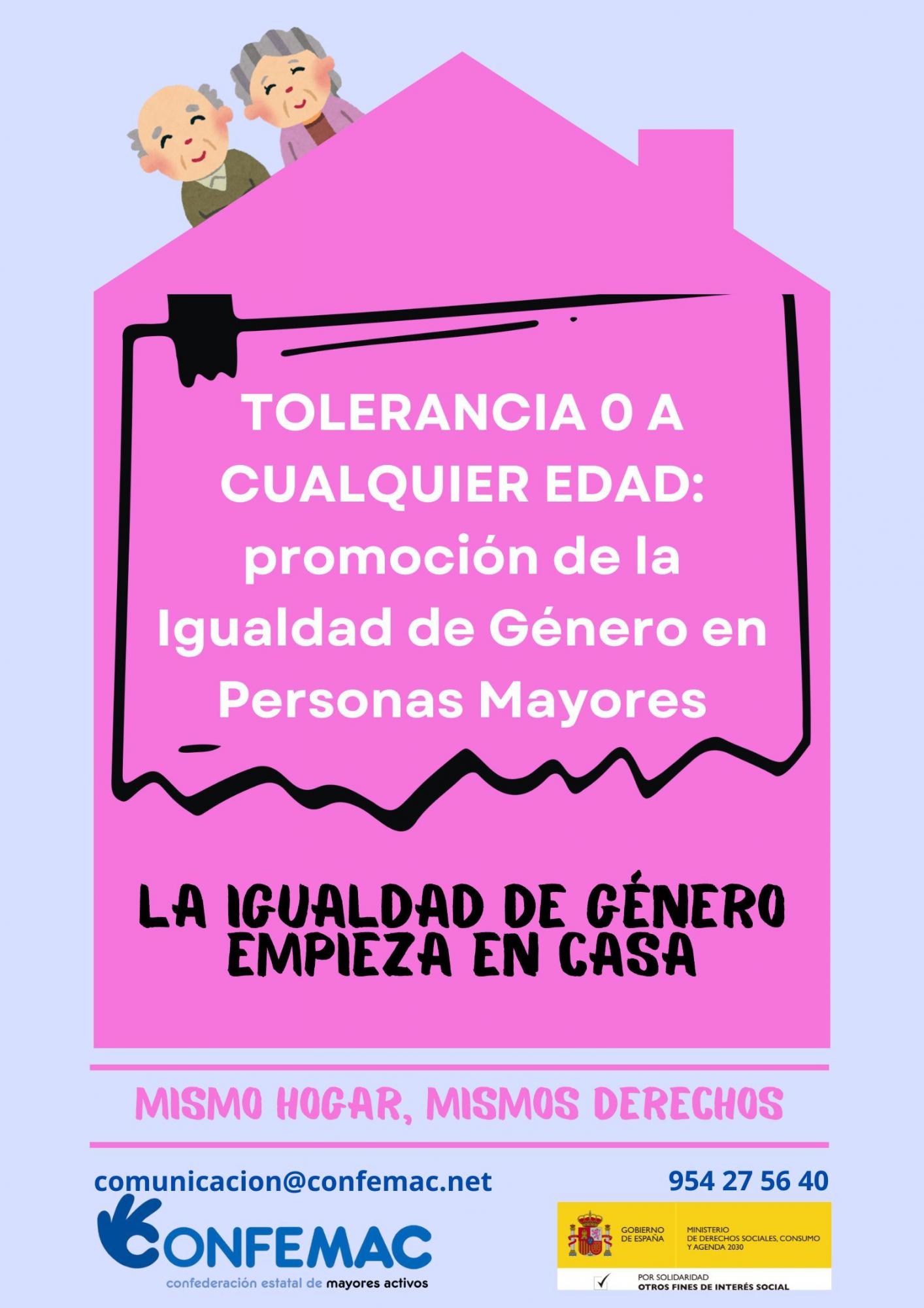 El programa »Tolerancia 0 a cualquier edad: promoción de la igualdad de género en personas mayores» tiene como objetivo concienciar y sensibilizar a las personas mayores (hombres y mujeres) sobre la importancia de la igualdad de género y la prevención de la violencia de género.