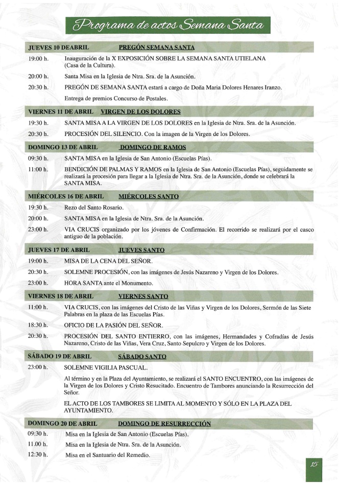 PROGRAMA SEMANA SANTA UTIEL – Del 10 al 20 de Abril de 2025