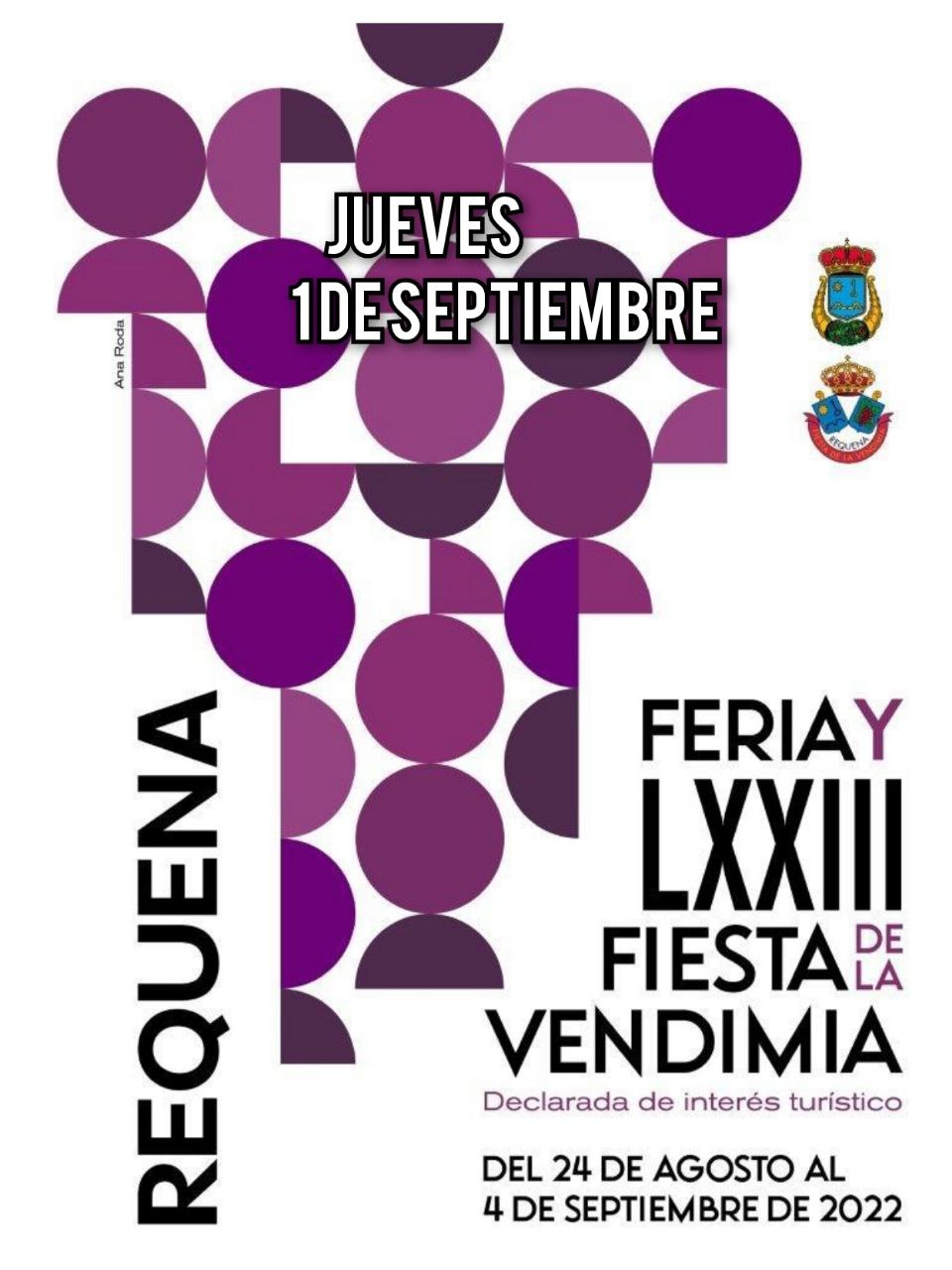 19.00 h.NOCHE DE LA FIESTA. Homenaje a la XLI Fiesta de la Vendimia, con la asistencia de autoridades, reinas, presidentes y comisión de Arrabal. Teatro Principal. Organiza LXXIII Fiesta de la Vendimia.