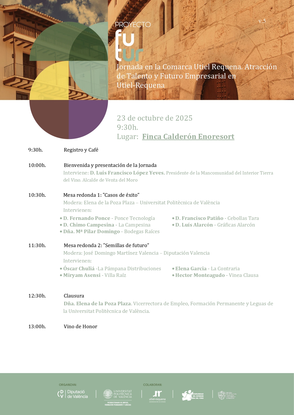 El programa persigue fortalecer la conexión entre universidad, empresas e instituciones locales, promoviendo la creación de nuevas oportunidades laborales y el desarrollo sostenible del territorio. La jornada de presentación de este proyecto se celebra este jueves 23 de octubre en la Finca Calderón Enoresort y está abierta a toda la ciudadanía, previa inscripción gratuita aquí.