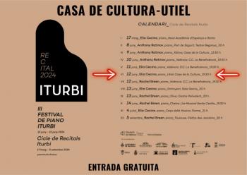 El Salón de Actos de la Casa de Cultura acoge el recital de Elia Cecino, ganador del XXII Concurso Internacional de Piano de València Iturbi. Este recital se enmarca dentro del Ciclo de Recitales de las personas ganadoras del Concurso que se celebra junto con el Festival de Piano de València Iturbi.