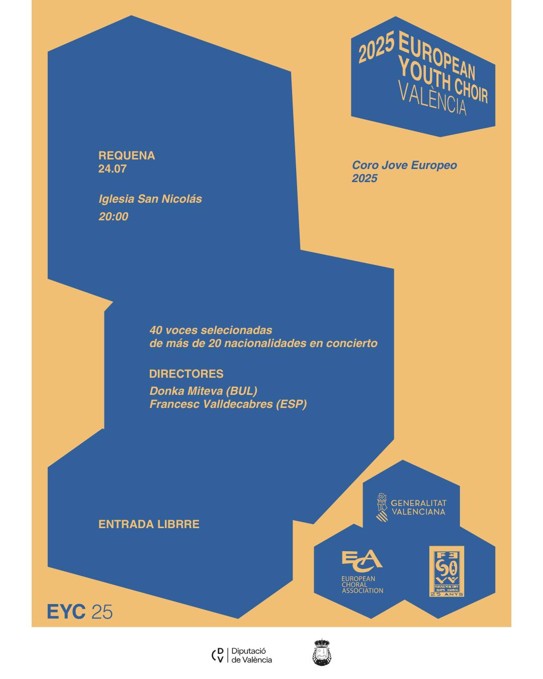 El próximo 24 de julio, a las 20:00 h, la Iglesia de San Nicolás de Requena será escenario de un concierto único con el European Youth Choir 2025.