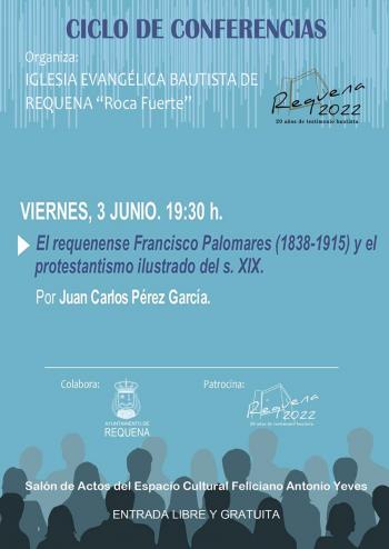 La conferencia lleva por título: “El requenense Fco Palomares (1838 – 1915 ) y el protestantismo ilustrado del siglo XIX” impartida por Juan Carlos Pérez García.