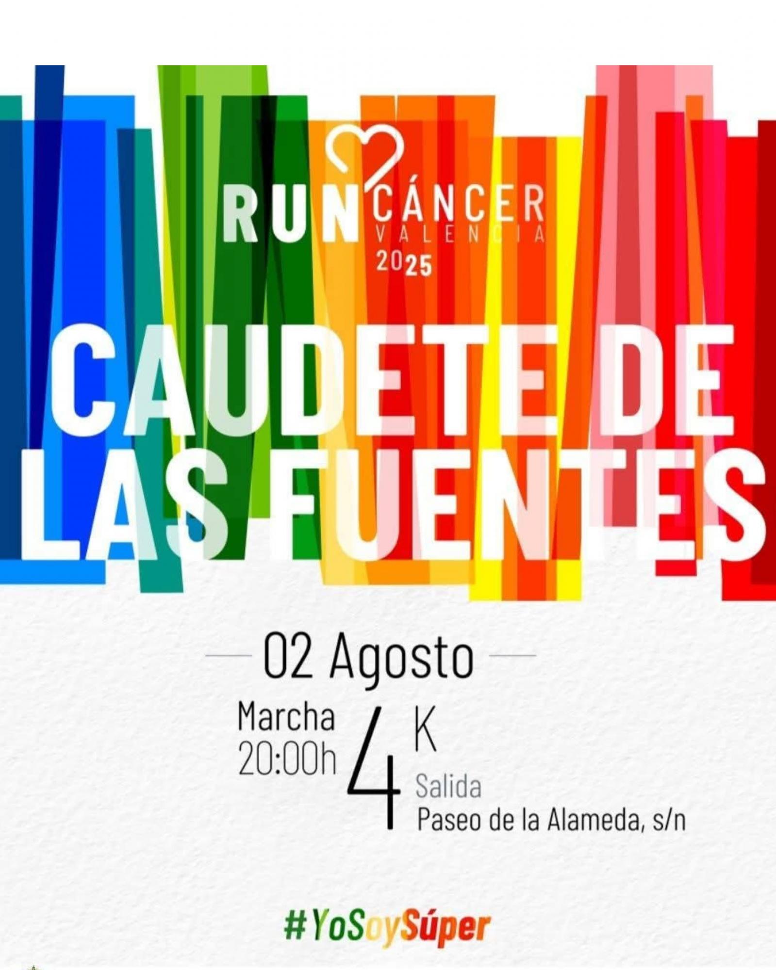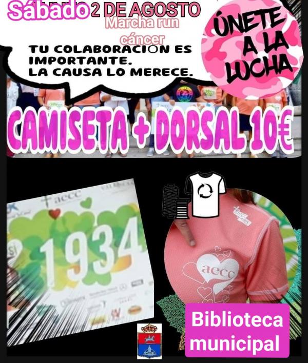 La junta local contra el cáncer del Caudete de las Fuentes informa que, hasta el viernes 1de agosto, en la Biblioteca de Caudete de las Fuentes se pondrán a la venta los dorsales y camisetas de la marcha Run Cáncer 2025.