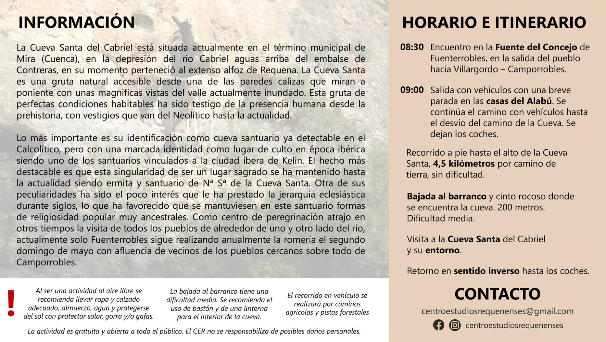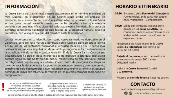 En esta ocasión visitaremos la Cueva Santa del Cabriel, una gruta natural junto al río Cabriel en el municipio de Mira (Cuenca). Su singularidad viene marcada por ser un lugar de culto desde la prehistoria, en especial por su vinculación con la ciudad íbera de Kelin. En la actualidad se conserva esta función, pues en Fuenterrobles se sigue realizando anualmente la romería el segundo domingo de mayo.
