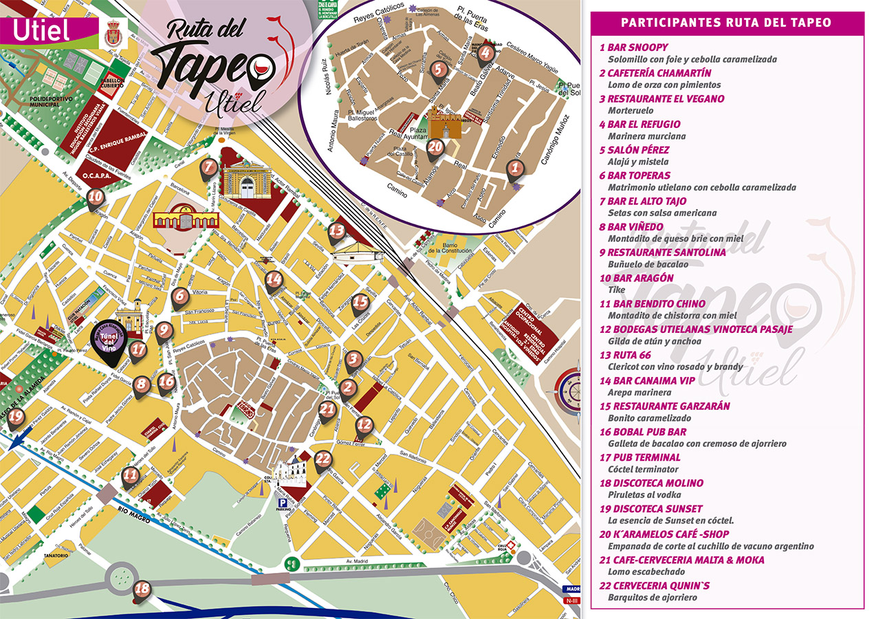 • 20:00 – Apertura de la Ruta del Tapeo con paradas en diferentes puntos hosteleros de Utiel.