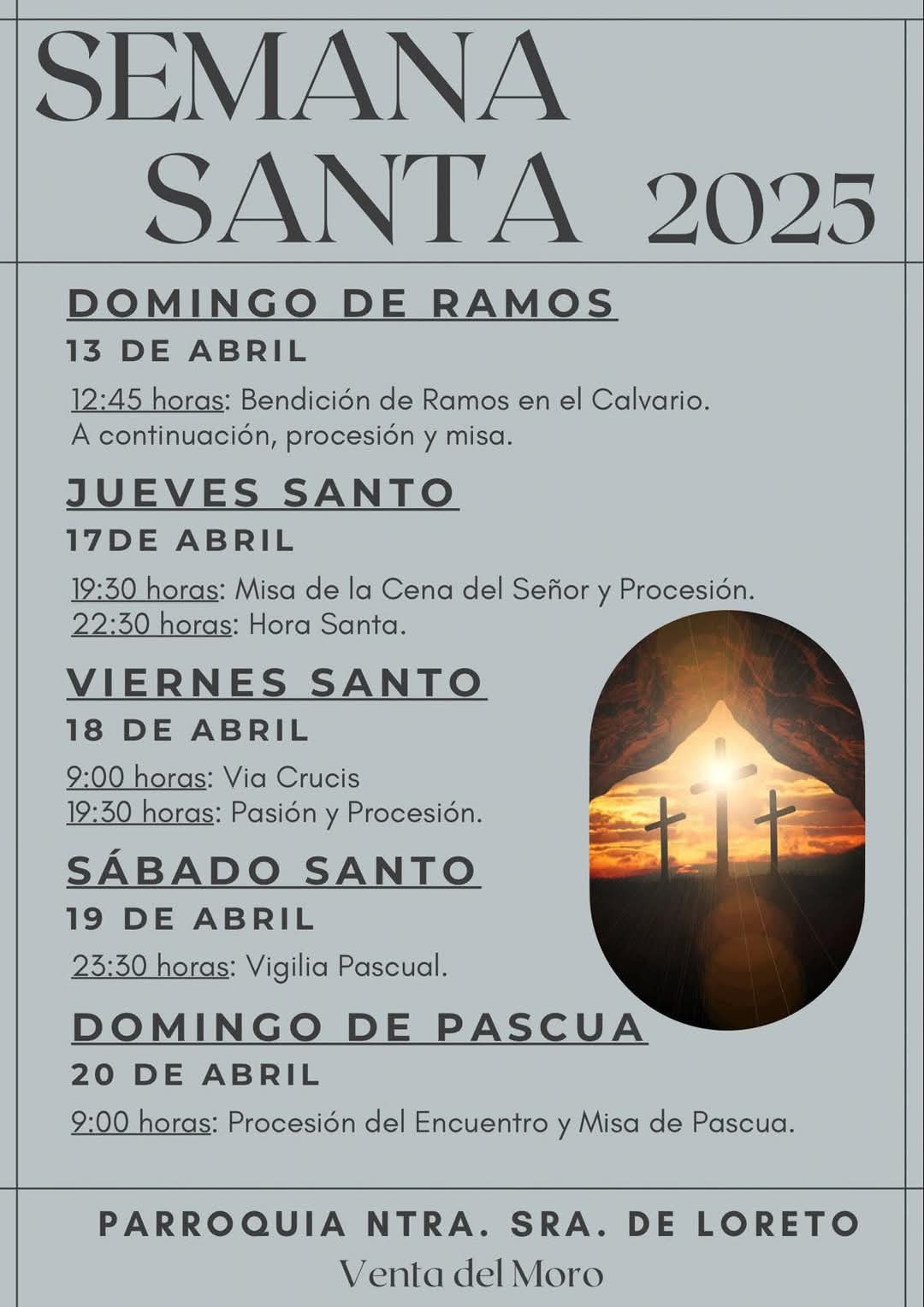 - 12 h. 45 m. Bendición de ramos en el Calvario y a continuación procesión y misa.