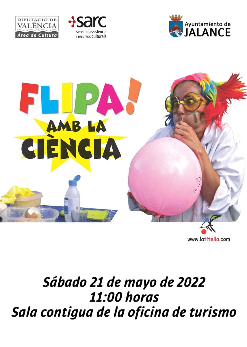 Mañana, sábado 21 de mayo a las 11:00h, tendrá lugar, en la sala contigua de la Oficina de Turismo de Jalance, el taller infantil “Flipa con la ciencia”.