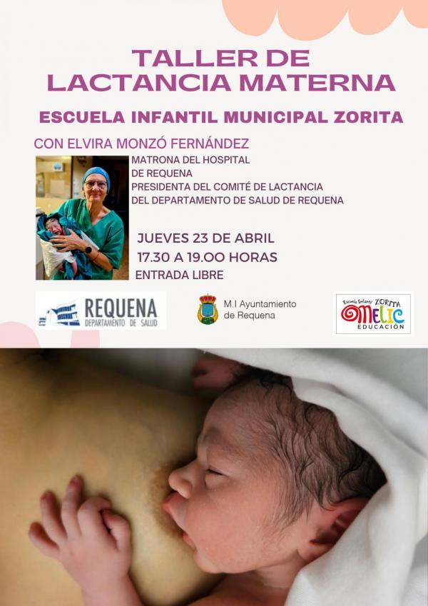 El próximo jueves 23 de abril, de 17,30 a 19.00 horas, tendrá lugar en la Escuela Infantil Zorita de Requena un taller sobre lactancia materna con Elvira Monzó Fernández.
