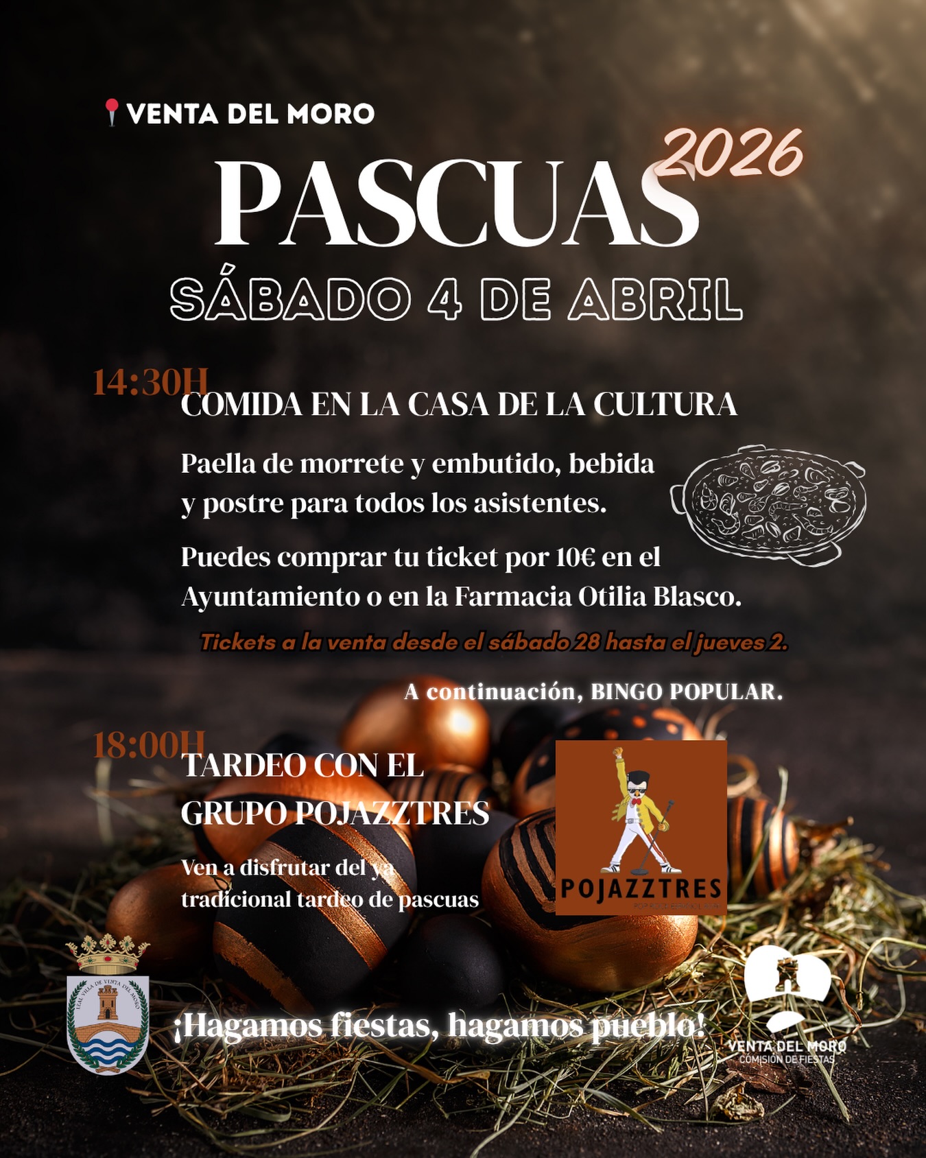La Comisión de Fiestas de Venta del Moro informa de que, como ya es tradición, está todo preparado para el esperado tardeo de Pascuas.