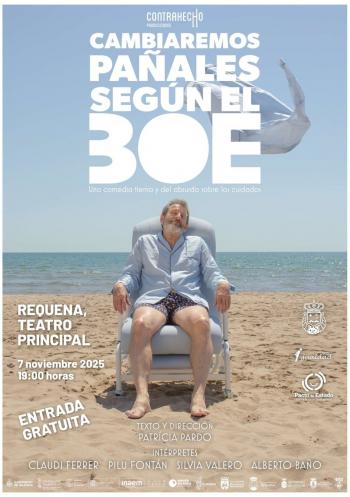 Desde el Ayuntamiento de Requena informan de que este viernes, 7 de noviembre, a las 19:00 h, el Teatro Principal acogerá la representación de la obra “Cambiaremos pañales según el BOE”, una comedia tierna y absurda que refleja el día a día de las personas cuidadoras y de quienes son cuidadas.