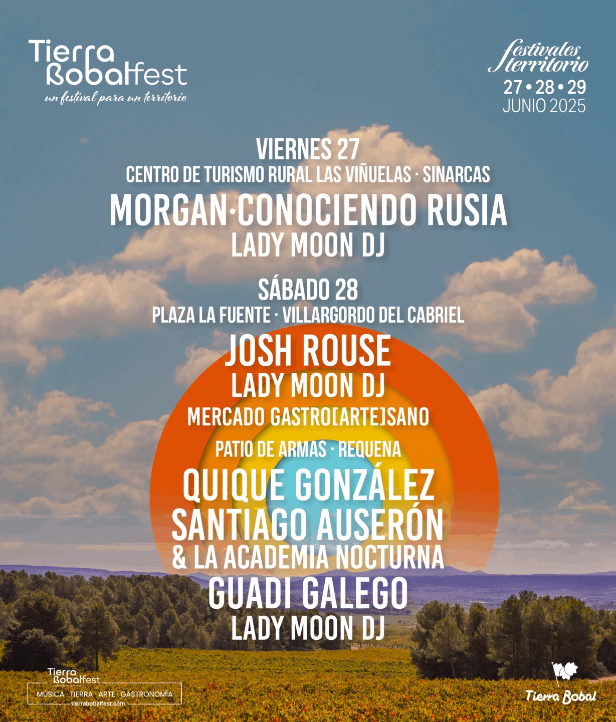 Tierra Bobal Fest completa su programación musical con sus conocidas Experiencias, una propuesta de actividades diseñada a medida del territorio para que el público conozca a fondo su paisaje, cultura, patrimonio, tradición vitivinícola y gastronomía. La comarca de Utiel-Requena volverá a disfrutar del 27 al 29 de junio con la tercera edición del festival, un evento que combina música en directo, patrimonio, vino y naturaleza para ofrecer una experiencia única en uno de los enclaves más singulares del interior de la Comunitat Valenciana, Tierra Bobal, formada por los municipios de Camporrobles, Caudete de las Fuentes, Chera, Fuenterrobles, Requena, Sinarcas, Utiel, Venta del Moro y Villargordo del Cabriel.