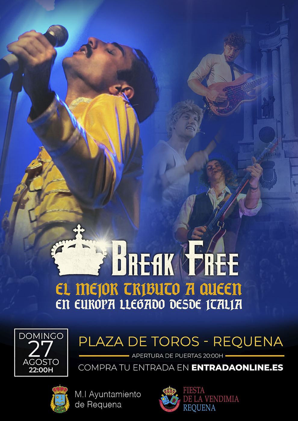 Break Free: espectáculo tributo a Queen, descrito por muchos como el mejor tributo en Europa, el más parecido al original; esto es lo que pasa cuando cuatro músicos multigraduados aman a Queen y deciden ¡Dedícales un show! La reproducción de imagen y sonido son continuamente estudiado en detalle para obtener este resultado. En