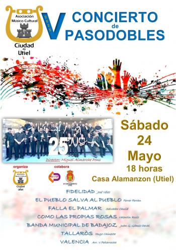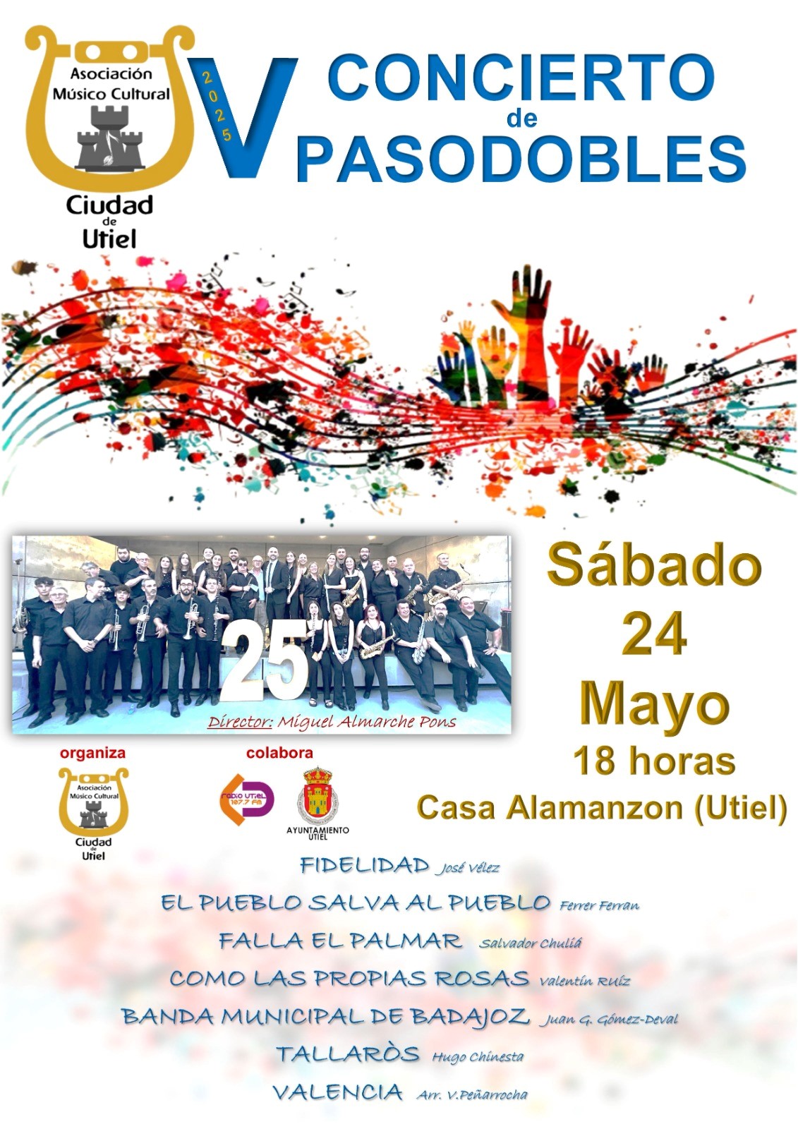 La Asociación Músico Cultural Ciudad de Utiel ofrece su quinto concierto de pasodobles en el Patio del Museo Municipal bajo la dirección de Miguel Almarche Pons.