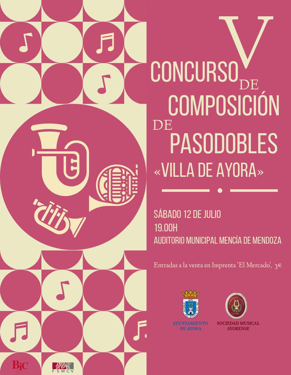 Mañana, sábado 12 de julio, tendrá lugar la quinta edición del Concurso de Composición de Pasodobles «Villa de Ayora»