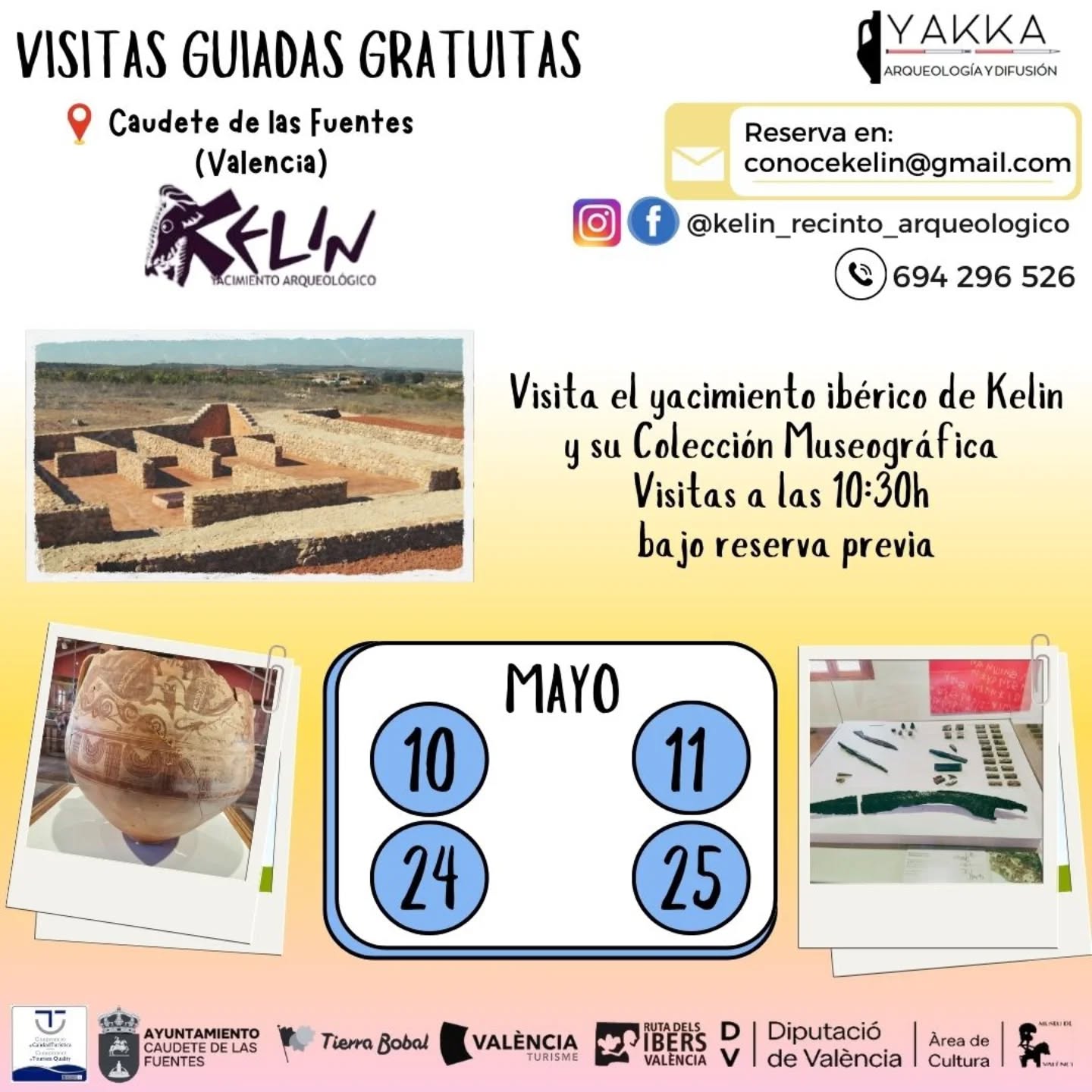 Fechas para visitar el yacimiento ibérico de la ciudad de KELIN en Caudete de las Fuentes (Valencia) durante el mes de mayo:
