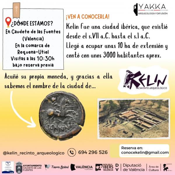 La visita tiene una duración aproximada de 1h y media y es gratuita. Visitaremos el recinto arqueológico de Kelin y su Colección Museográfica.