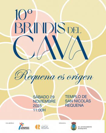 El Templo de San Nicolás acogerá, el próximo sábado 29 de noviembre, a las 11:00 horas, la celebración de la X edición del Brindis del Cava “REQUENA ES ORIGEN”, un evento organizado por el Ayuntamiento de Requena en colaboración con la Asociación de Elaboradores de Cava de Requena y la Generalitat Valenciana.
