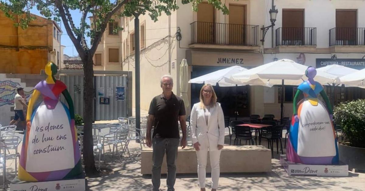 La Plaza del Ayuntamiento de Utiel cuenta con invitadas especiales. 6 esculturas de falleras de grandes dimensiones, obra de las artistas Pilar y María José Luna , presiden este enclave con mensajes reivindicativos sobre igualdad , sororidad y empoderamiento como “ Avanzamos con igualdad”; “ Juntas somos más fuertes” “ o «Un grito por la igualdad”.