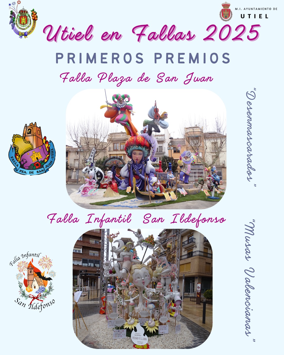 Desde el Ayuntamiento de Utiel trasladamos nuestra sincera enhorabuena a los premiados y el reconocimiento a los falleros y falleras de las tres comisiones por su dedicación y esfuerzo especialmente en un año de adversidades, para que estas fiestas sigan luciendo y representando una tradición de más de 8 décadas.