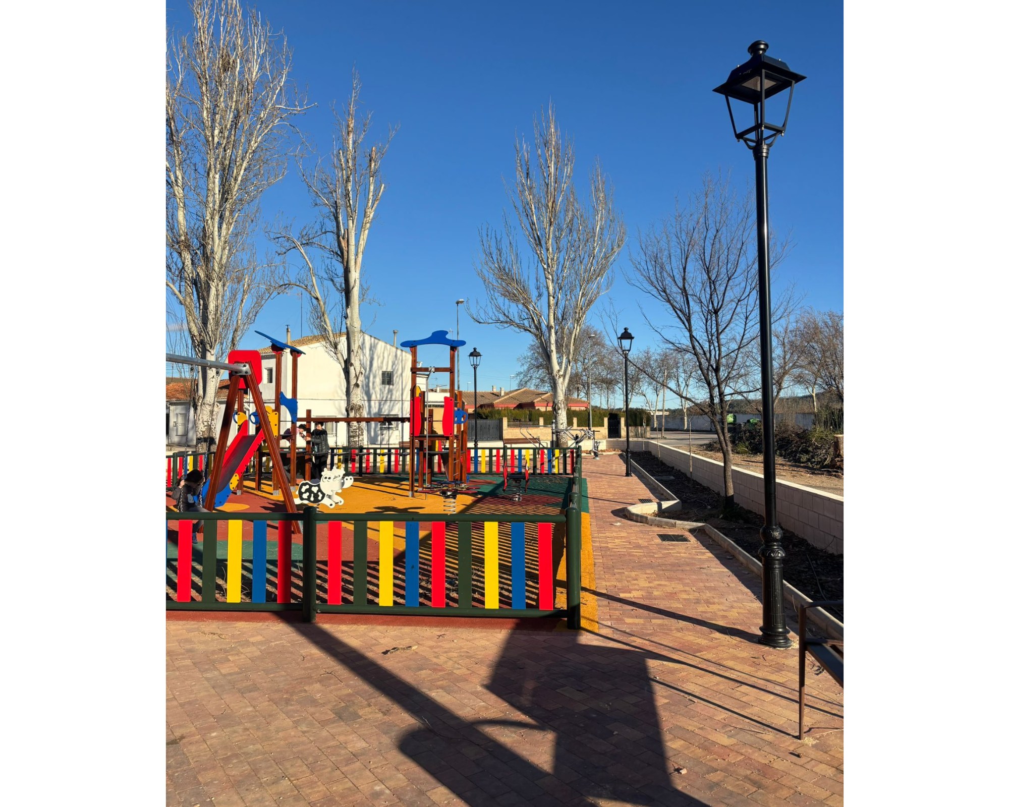 El parque cuenta ahora con un nuevo juego con tres accesos, tres muelles infantiles y tres equipos de calistenia, fomentando el ocio y la actividad física para distintas edades. Además, se ha habilitado un paseo en la parte trasera del lavadero que mejora el recorrido y la accesibilidad de la zona.