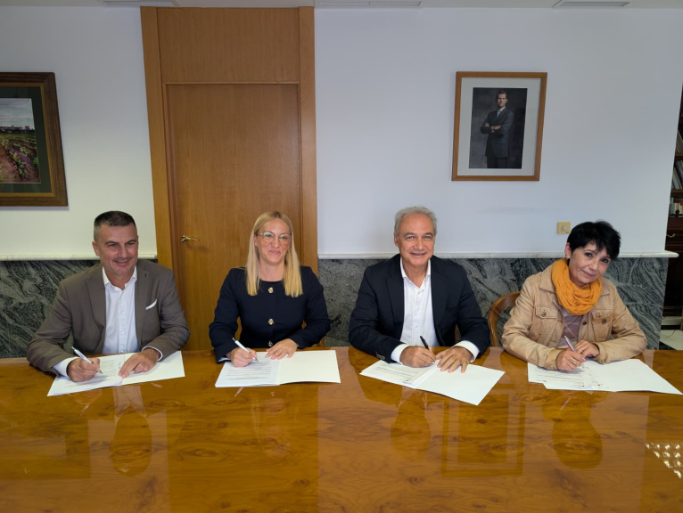 Esta mañana el alcalde de Utiel, Ricardo Gabaldón, ha firmado el convenio de colaboración de la campaña especial de reactivación del comercio local “Tarjeta Utiel Comercial” con los representantes de las entidades colaboradoras, AICU, Caixa Popular y Fundación Horta Sud.