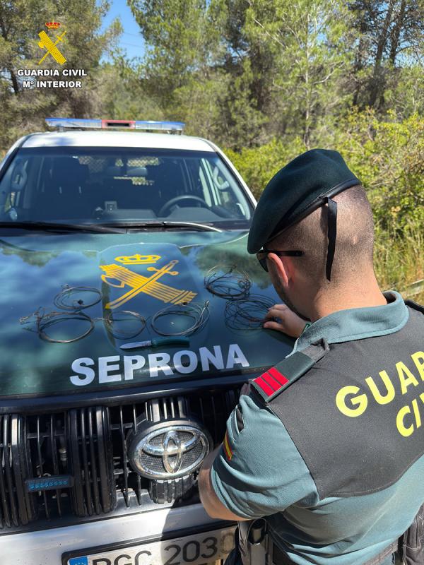 La Guardia Civil investiga a un hombre por colocar lazos trampa tras denuncia de un particular, cuya perra quedó atrapada en uno de ellos.