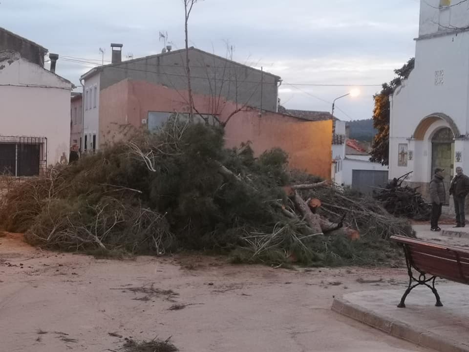 Durante la mañana se afanan en cortar los pinos carrascos, desligarlos y subir la madera a los tractores durante unas tres horas. Cargados los tractores almuerzan todos juntos en el mismo sitio de corta con bollos de tajás típicos. Después se dirigen a la aldea para formar la hoguera en la plaza de la Iglesia donde previamente se ha dispuesto una capa de arena. Una vez montada la pira, los participantes se toman un refresco en el bar. Antiguamente, la hora de salida a por la leña era por la tarde. Tras comer se reunían los hombres que iban a por la leña y la hoguera se montaba ya casi sin luz.