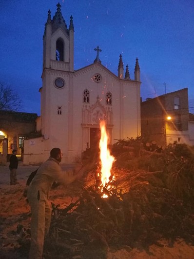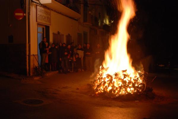 Estas hogueras invernales se realizan cuando el campo reposa y las tareas agrícolas menguan en su urgencia. La dureza del frío invernal es contrarrestada con el calor de las llamas en una hoguera comunitaria que reúne a la vecindad para celebrar el santo y/o patronazgo, tras la recolección de las cosechas tradicionales (uva, almendra y oliva).