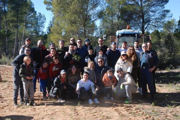 Foto de la preparación de la gran hoguera comunal y patronal de San Antón en Casas de Moya (2016, Paco Monteagudo).