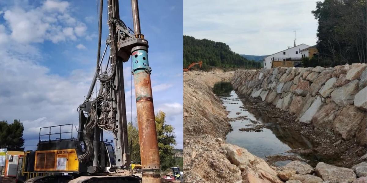 Los trabajos, ejecutados por la Confederación Hidrográfica del Júcar, avanzan según lo previsto. En estos momentos se están instalando los pilotes que servirán de base para la estructura del nuevo puente, una fase esencial para garantizar su estabilidad y durabilidad.
