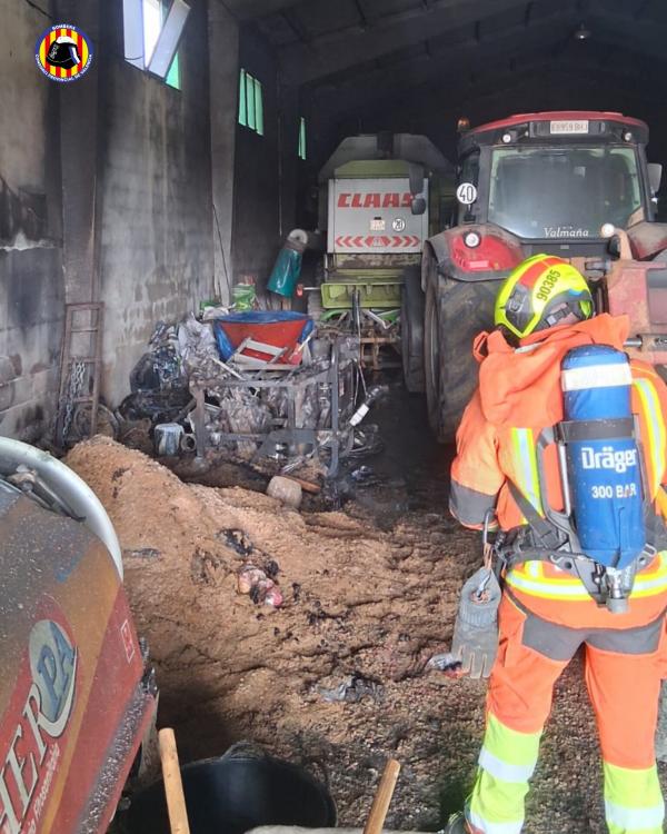 Efectivos del Consorcio Provincial de Bomberos actuaron en la mañana del martes, 28 de abril, en el incendio de una nave agrícola ubicada en Sinarcas.
