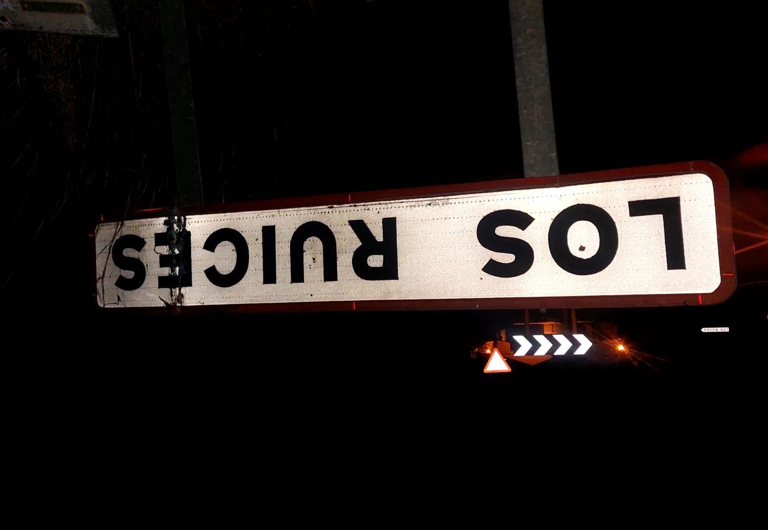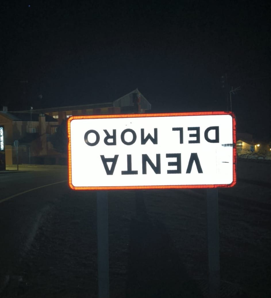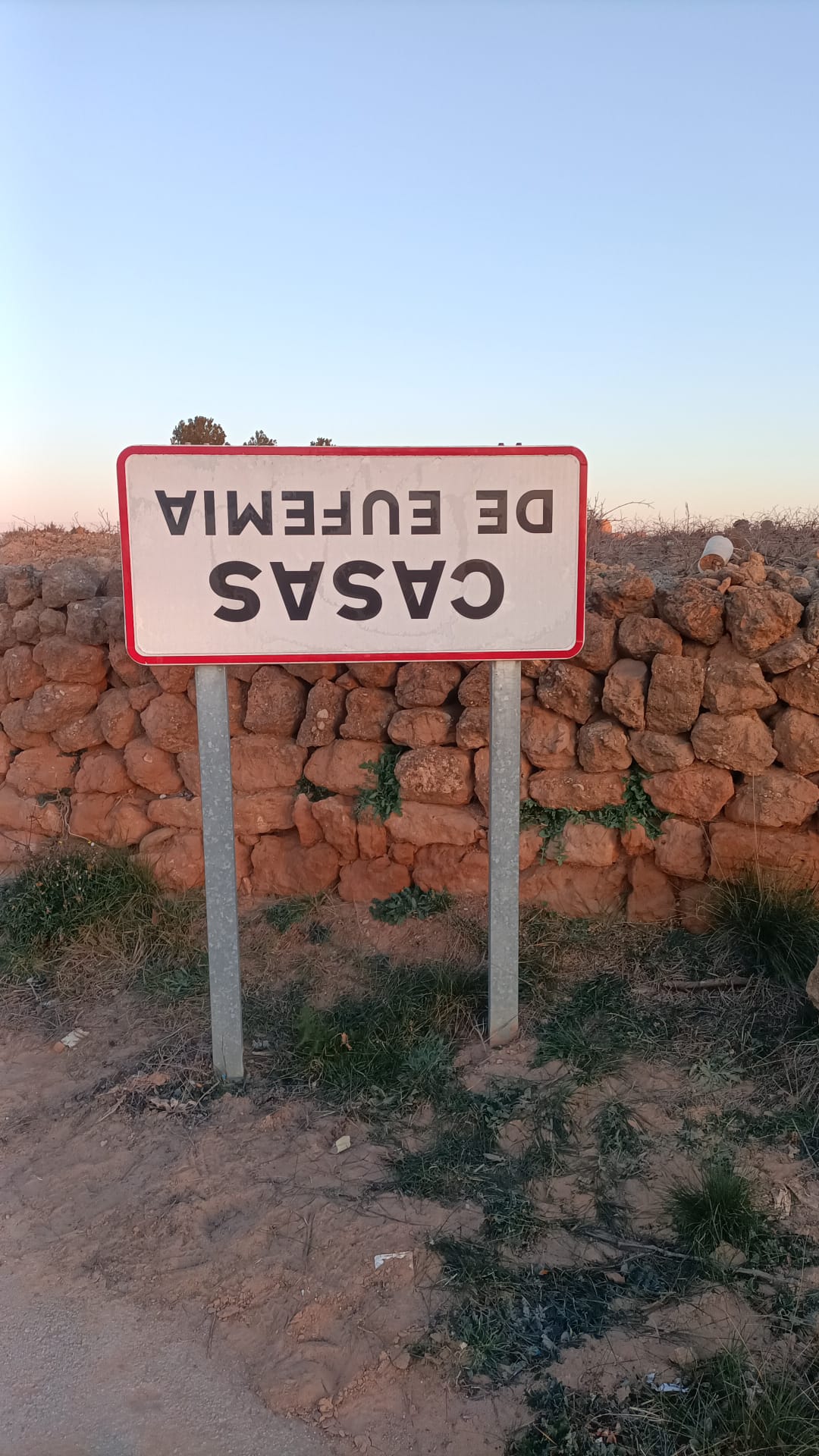 Esta acción reivindicativa busca visibilizar la precaria situación que enfrenta el campo mientras cada vez entran más alimentos de terceros países. Vamos, «el mundo al revés» como estas señales.