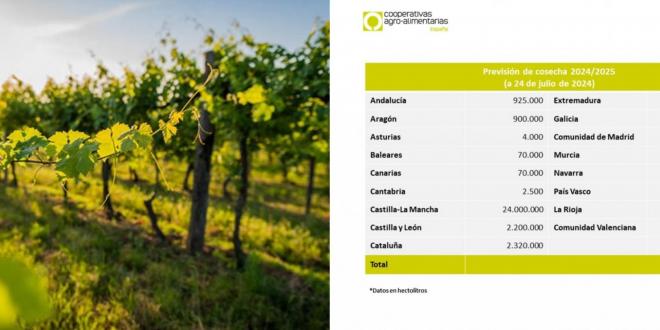 Cooperativas Agro-alimentarias de España hace sus primeras estimaciones de cosecha de uva por regiones