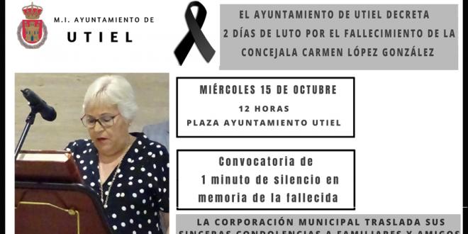 El Ayuntamiento de Utiel decreta 2 días de luto oficial por el fallecimiento de la concejala Carmen López González