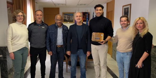 El alcalde de Utiel, Ricardo Gabaldón, recibe al deportista Kevin Koffi para felicitarle tras su último título de Campeón del Mundo de Kickboxing