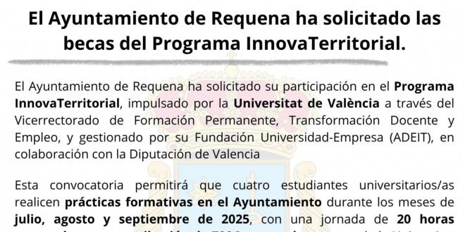 El Ayuntamiento de Requena solicita las becas del Programa InnovaTerritorial