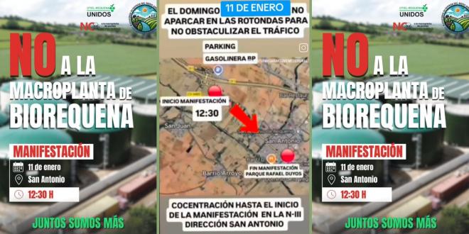 San Antonio retoma este domingo la manifestación contra la macroplanta de Biorequena con respaldo comarcal