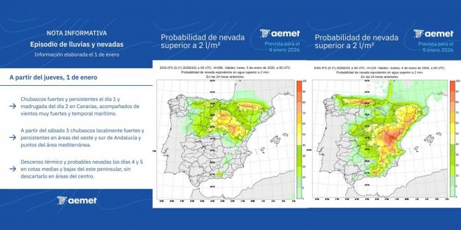 Nota informativa de la AEMET: Episodio de lluvias y nevadas por la borrasca Francis