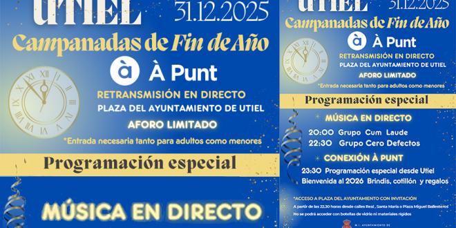 Utiel dará la bienvenida al año 2026 con una Fiesta de Nochevieja muy especial con música en directo y espectáculos de animación