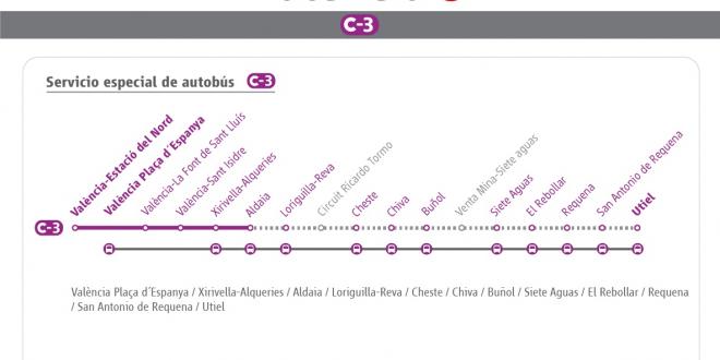 El origen y destino del servicio por carretera de la línea C3 cambia a Plaza España