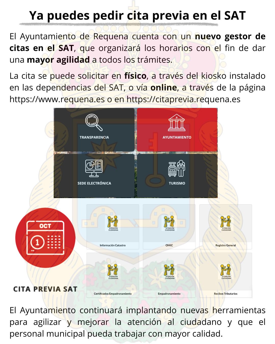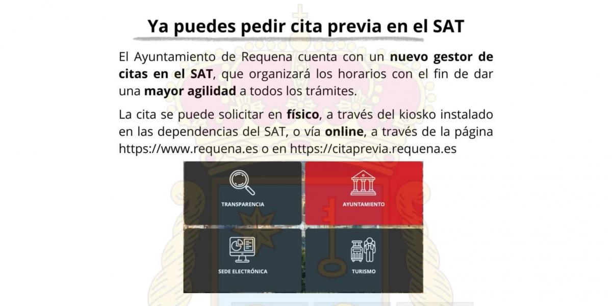 Desde el Ayuntamiento de Requena ya está en funcionamiento un nuevo gestor de citas en el SAT, con el objetivo de organizar mejor los horarios y ofrecer una atención más ágil y eficiente a la ciudadanía.
