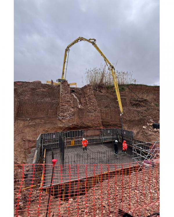 El pasado viernes se finalizó el hormigonado de la zapata del lado izquierdo del puente, y está previsto que este miércoles se avance con el hormigonado de la zapata del lado derecho, completando así una fase fundamental de la cimentación de la estructura y consolidando la base sobre la que se levantará el nuevo puente.