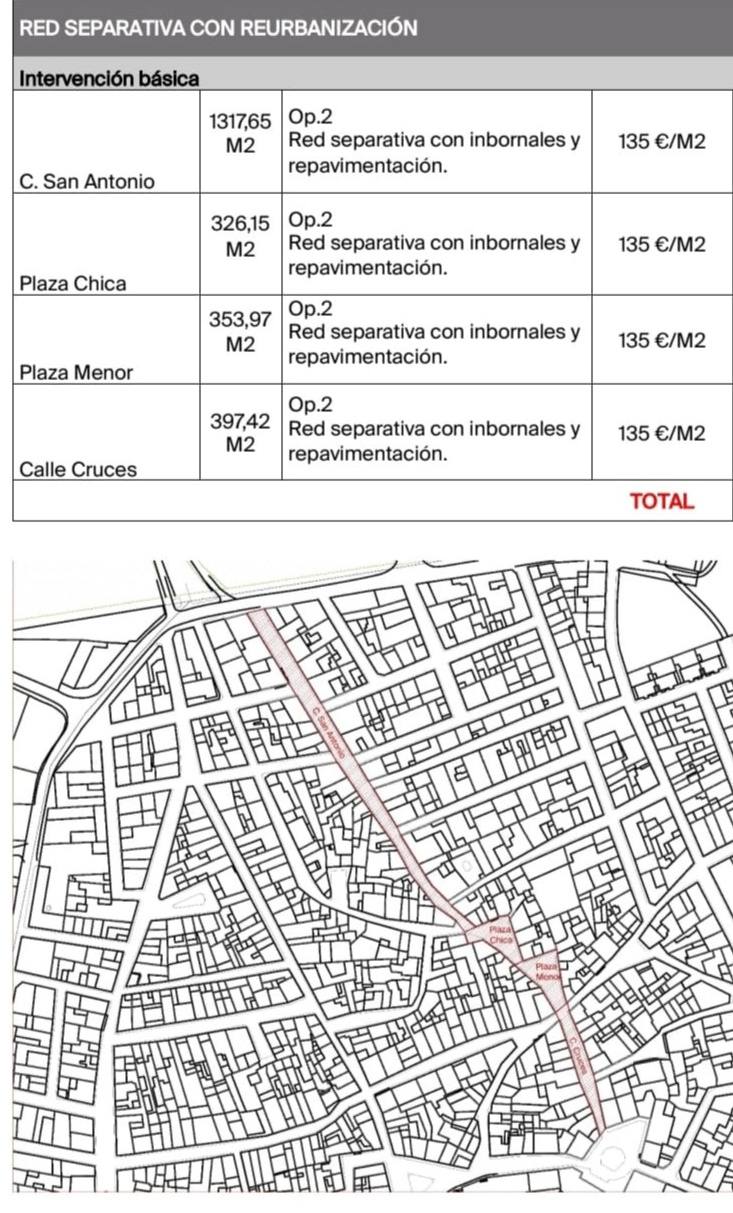 Las actuaciones también contemplan importantes mejoras en infraestructuras y saneamiento, con la renovación de la red de pluviales, la reurbanización e instalación de sistemas SUDS en el eje de escorrentía de las calles San Antonio, Cruces, Almendro y Valencia hasta la calle Arco, así como la intervención en los colectores de la placetilla del Barranco.