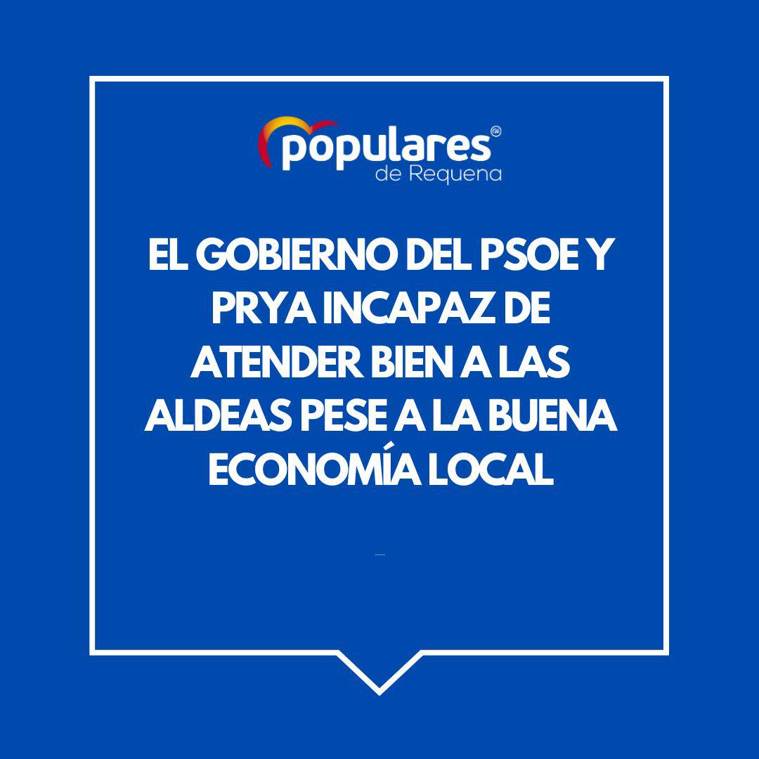 A pesar de presumir de buena situación económica las aldeas de Requena siguen sin recibir la atención que reclaman. El gobierno del PSOE y PRYA está siendo incapaz de cubrir en tiempo y forma las necesidades que las aldeas reclaman a su gestión.