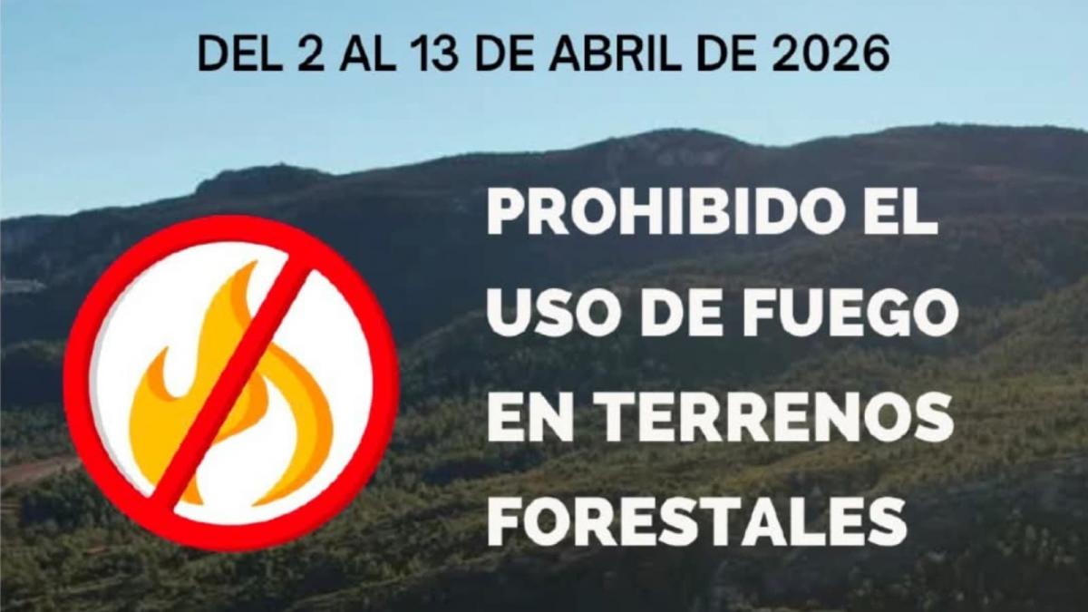 Desde el Ayuntamiento de Requena informan de que, del 2 al 13 de abril de 2026, queda prohibido el uso de fuego en terrenos forestales o a menos de 500 metros de los mismos, así como suspendidas las autorizaciones de los planes locales de quemas.